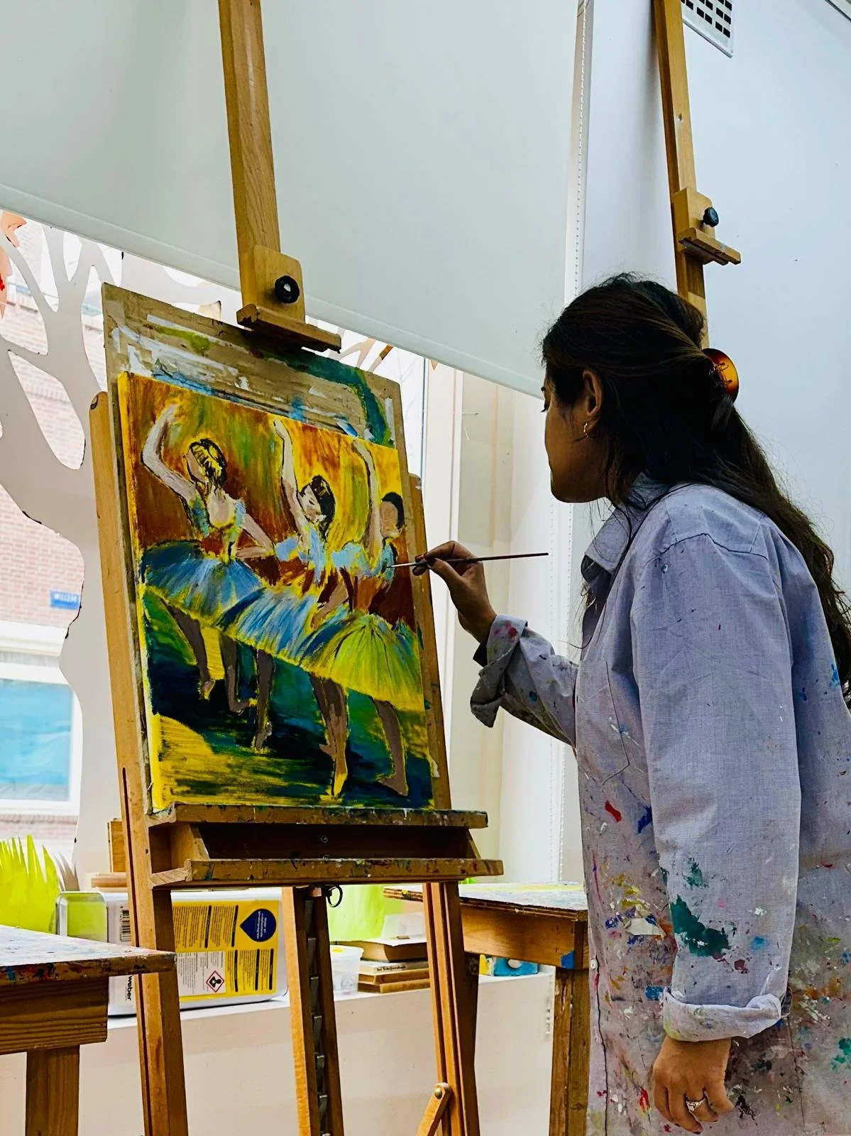 I work primarily with oils on medium to large-scale canvases, using expressive brushwork and layered colour to capture mood over realism. The artists who have shaped me range from Van Gogh, Monet, and Matisse, to Tyeb Mehta, Amrita Sher-Gill, and Jean-Michel Basquiat — each reminding me of art’s ability to be both deeply personal and universally resonant.